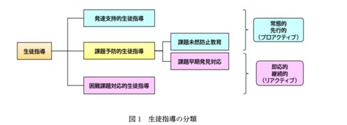 1.生徒指導の構造 改訂版生徒指導提要では以下のように書かれています。 1.2 生徒指導の構造 1.2.1 2軸3類4層構造 生徒指導は、児童生徒の課題への対応を時間軸や対象、課題性の高低という観点から類別することで、 構造化することができます。生徒指導…